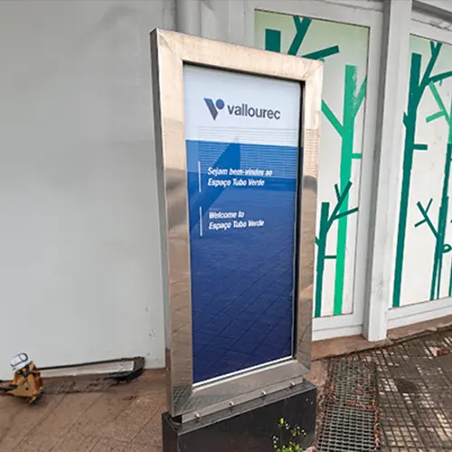 Aumente a visibilidade da sua empresa com totens de sinalização para ambientes internos ou externos, ideais para indicar a localização e fortalecer sua marca.
